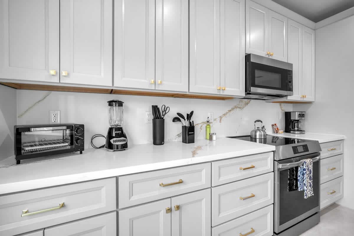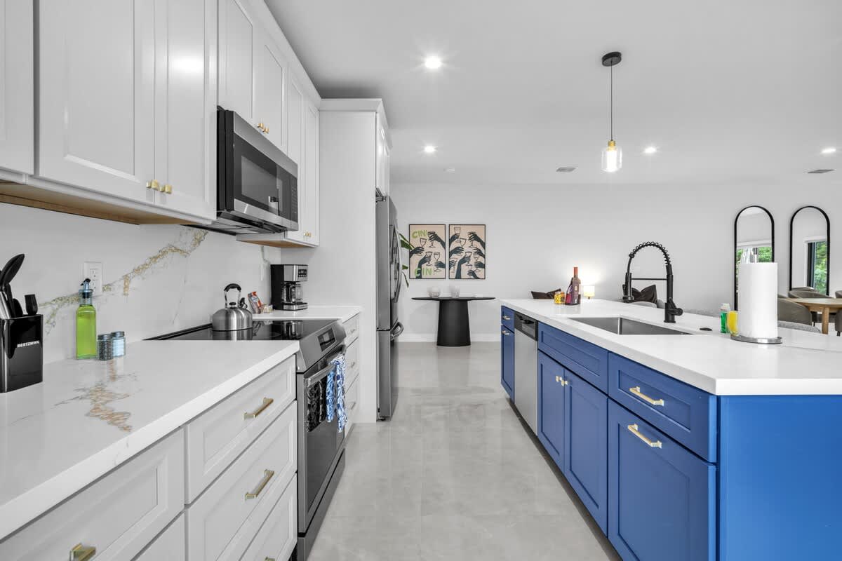 Kitchen: The modern kitchen comes fully equipped with brand-new appliances, making it easy to cook dinners or quick snacks.