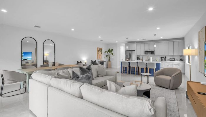 Living Areas: The open living room features a cozy sectional, great for movie nights or relaxing together. The bright layout flows into the dining area, a perfect spot for meals and conversations.