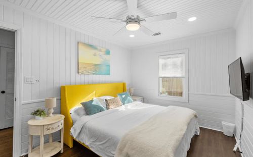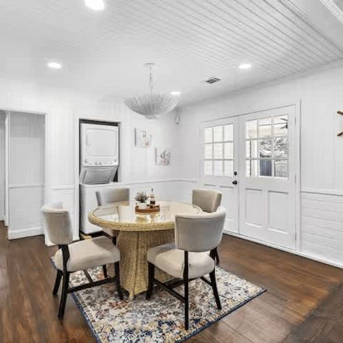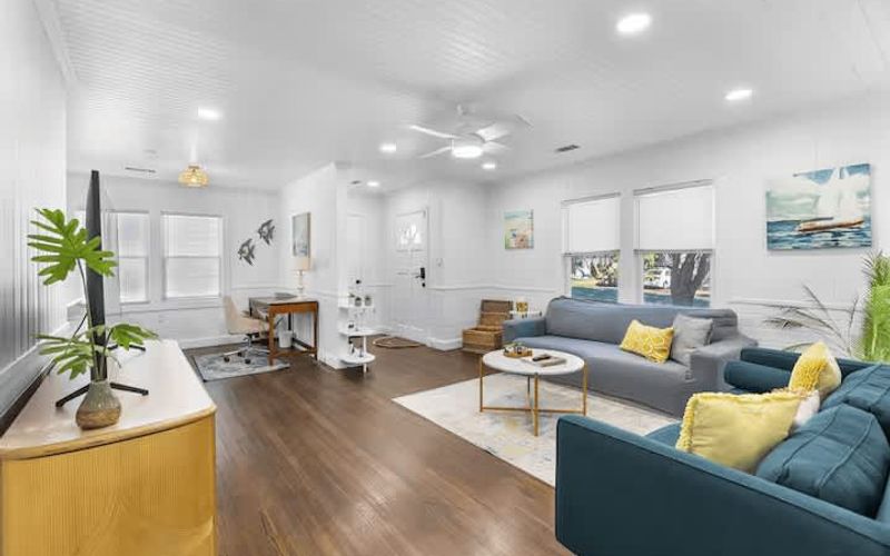 Welcome to our Mt. Pleasant Cottage—freshly renovated and thoughtfully designed. The spacious living area is perfect for families and friends to relax. Sip your morning coffee on the private porch or patio while enjoying views of the fenced backyard and serene pond with fountain. Explore Charleston and Mount Pleasant, from sandy beaches and historic sites to top dining and local attractions.