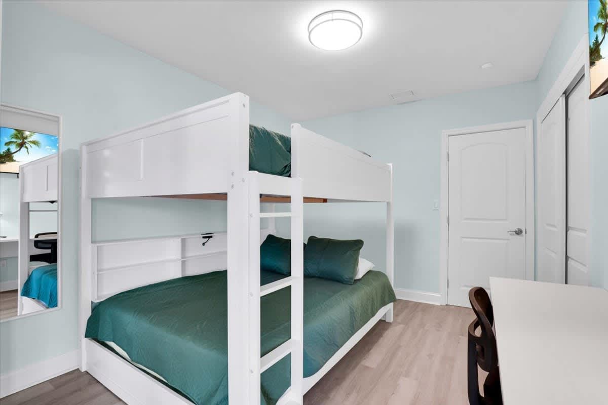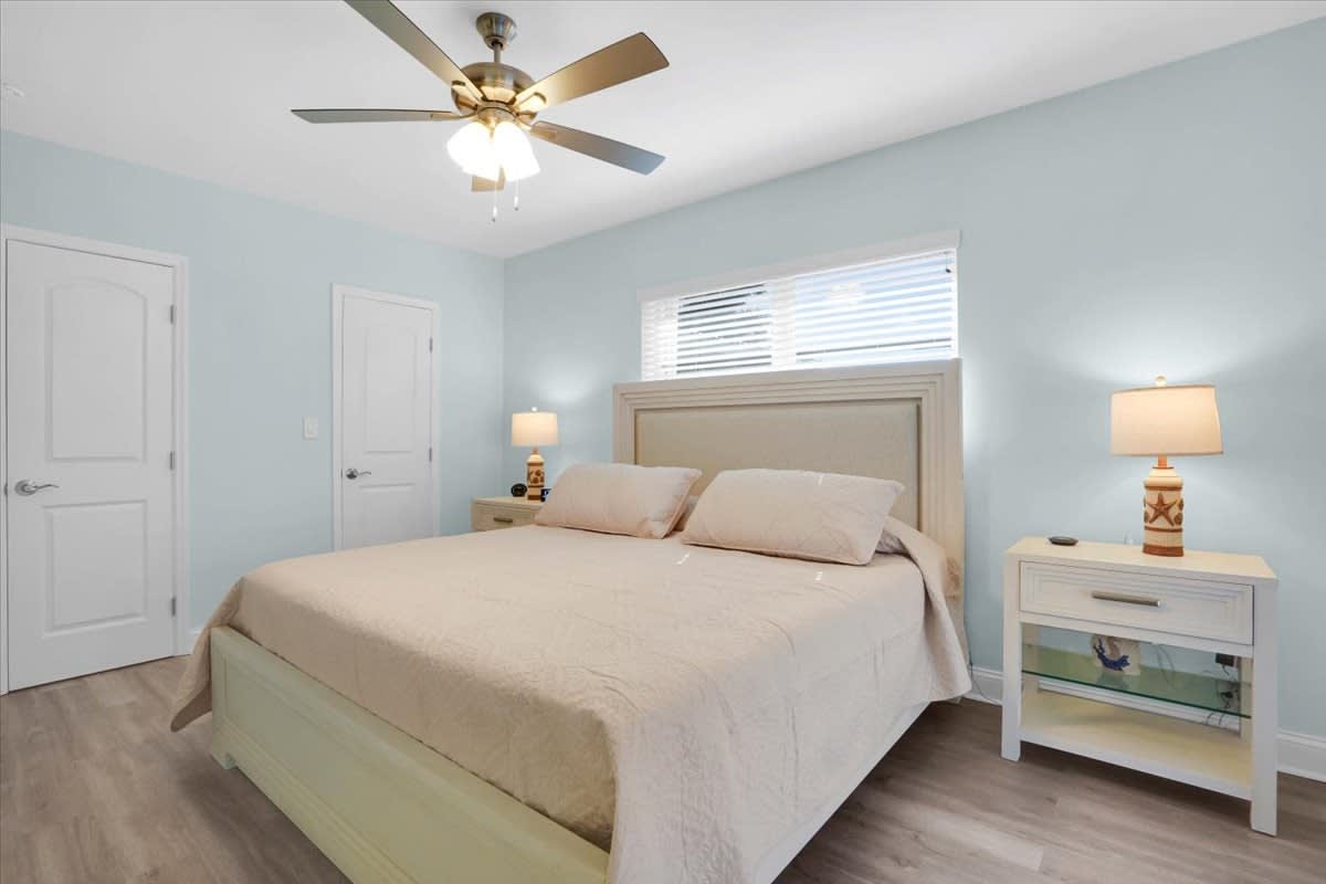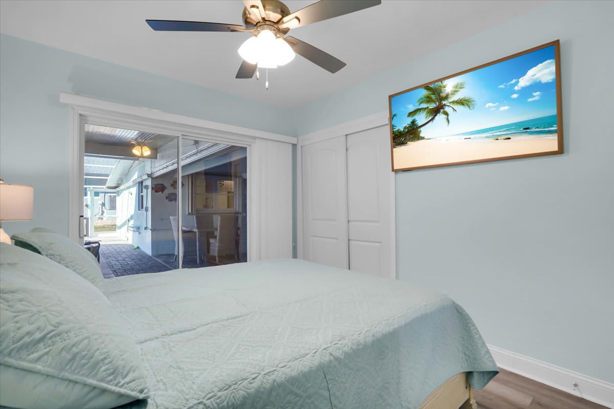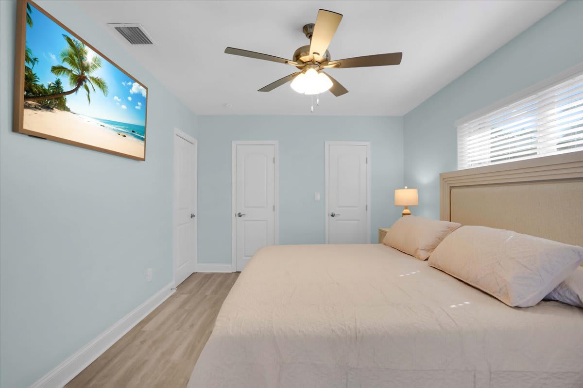 • Primary Bedroom: King bed, ensuite bathroom, direct pool & lanai access
