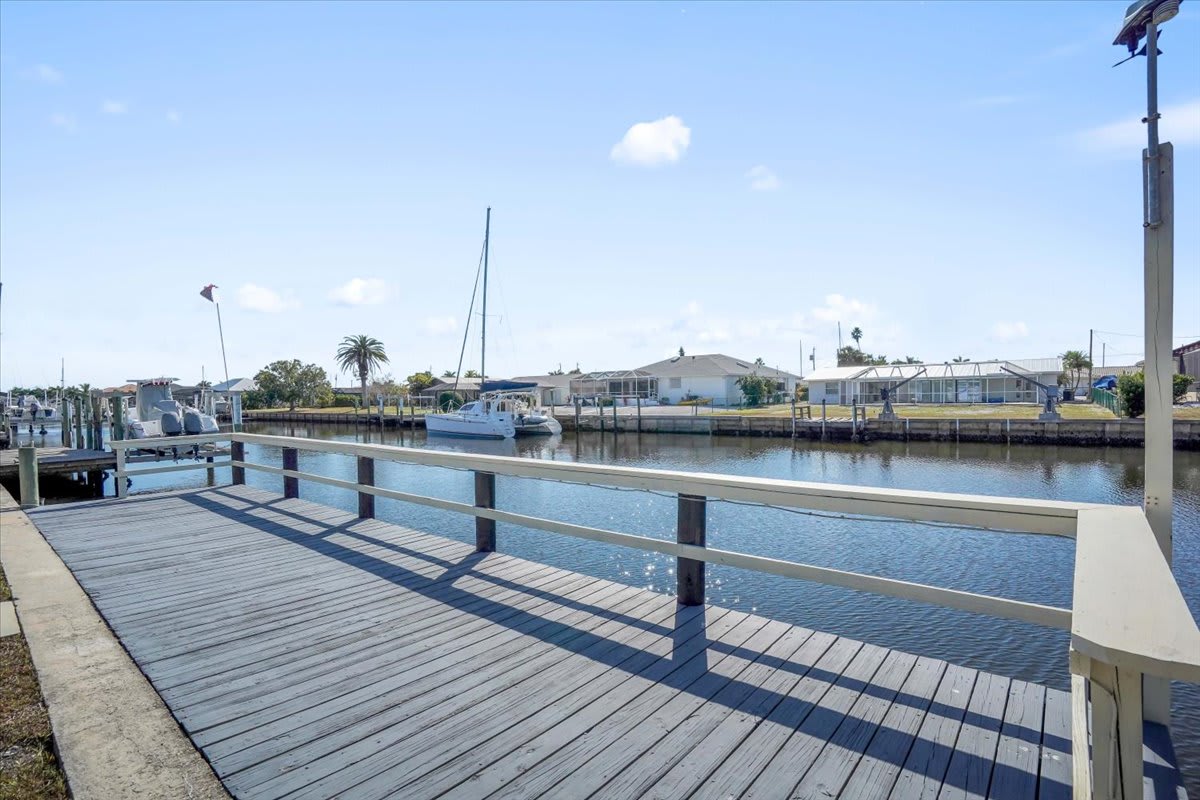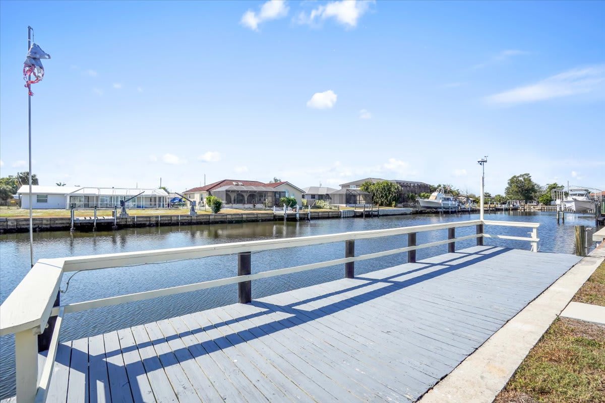 Located on a quiet saltwater canal with no bridges, this canal-front home offers sailboat access to Charlotte Harbor. The private dock with water and electric is ideal for boating, kayaking, paddle boarding, fishing, or enjoying stunning Florida sunsets. (The Canal has an exit to the ocean with no bridges, so sailboats or tall boats are welcomed)