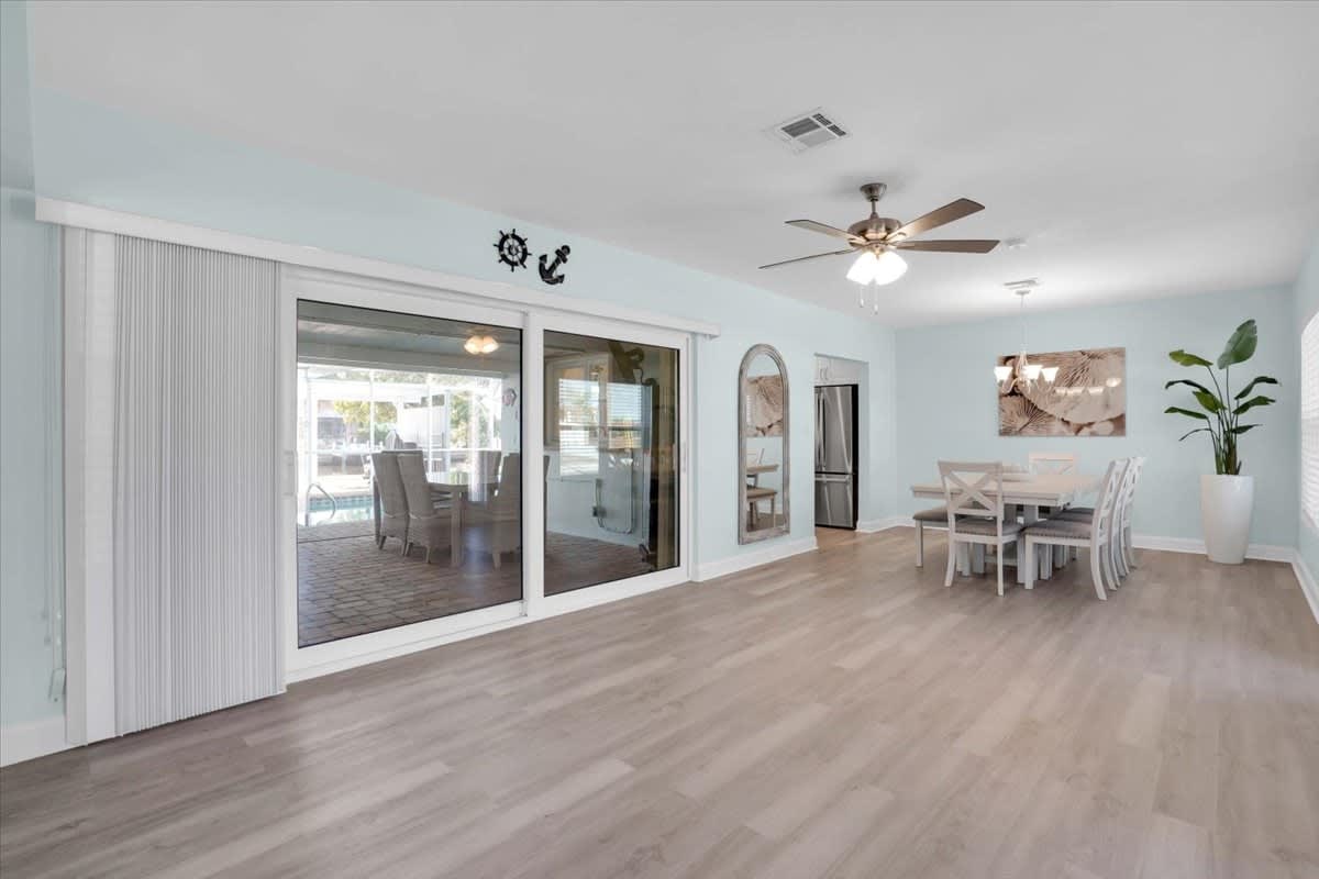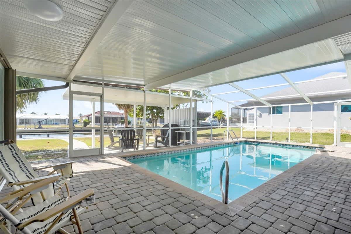 Guests have full and private access to the entire home, including all indoor living spaces, bedrooms, bathrooms, and the fully equipped kitchen. Enjoy exclusive use of the heated pool, screened lanai, backyard, and private waterfront dock. The driveway and garage are available for guest parking. There are no shared spaces this is a completely private waterfront vacation rental in Port Charlotte, designed for comfort, relaxation, and uninterrupted enjoyment.