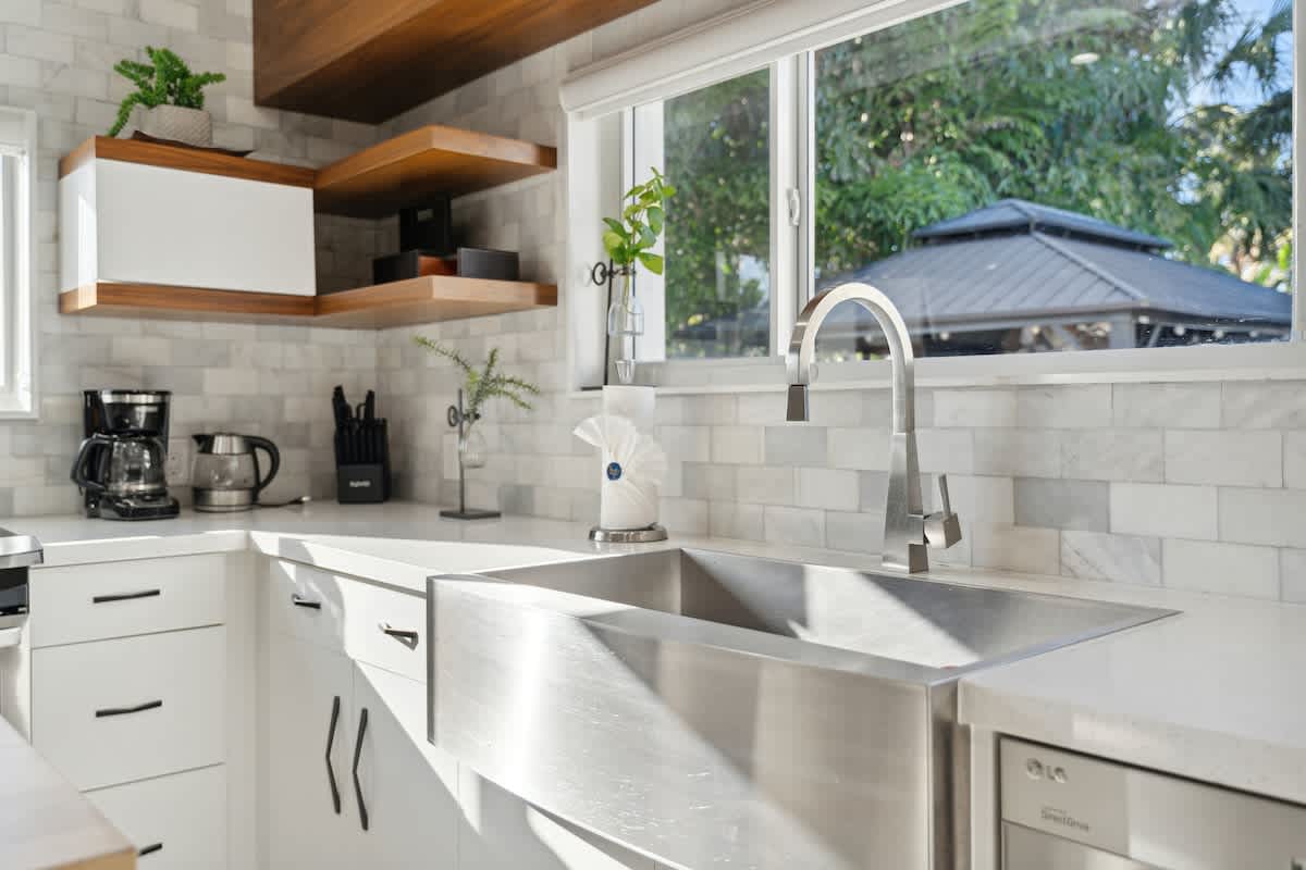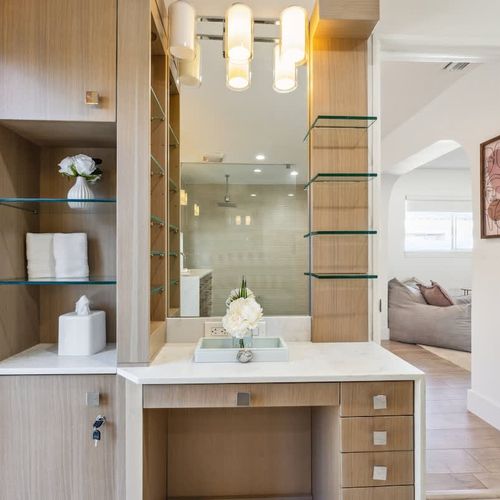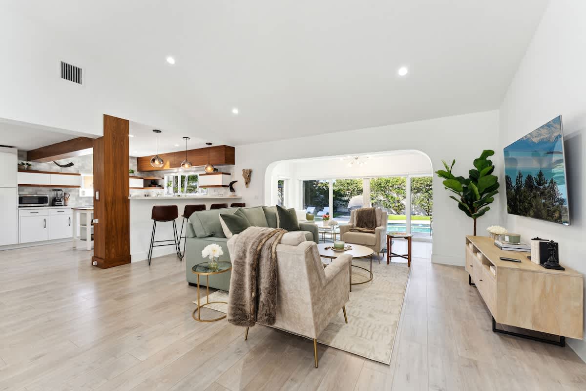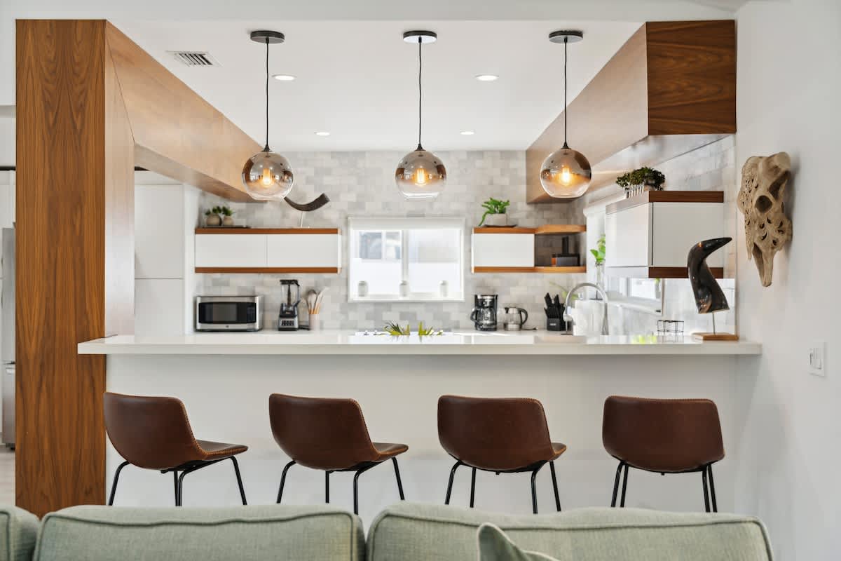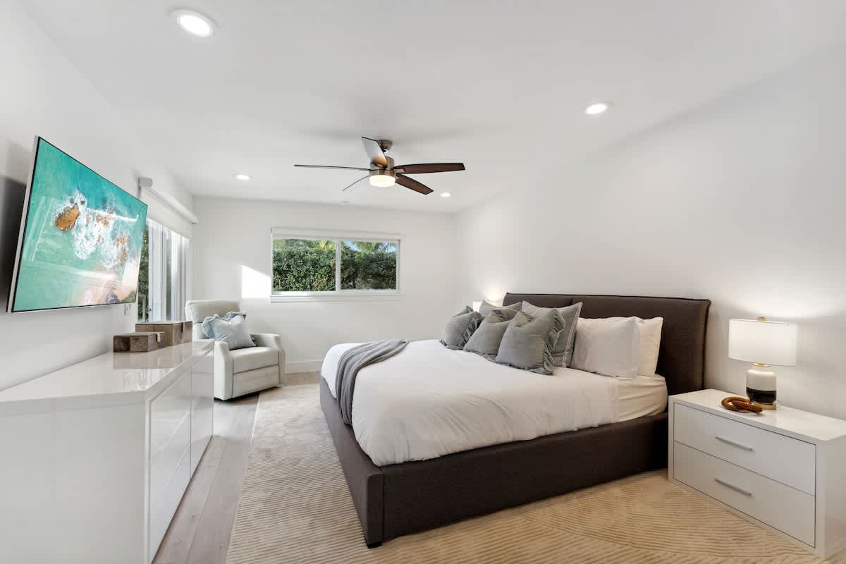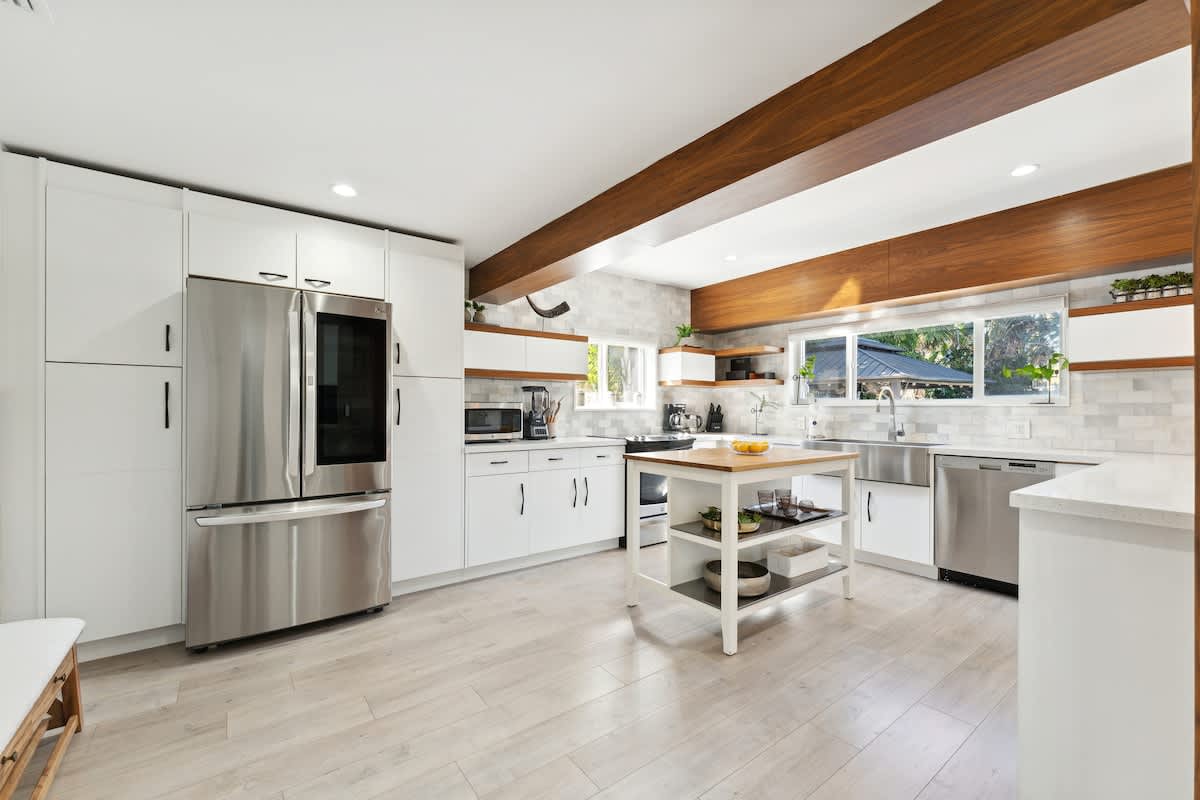 Step into a serene and stylish interior, where calming colors and modern finishes create a peaceful escape from the everyday. The open-concept living and dining area is perfect for group gatherings, movie nights, or simply lounging after a day at the beach. Our fully stocked kitchen has everything you need to prepare meals and enjoy time together.