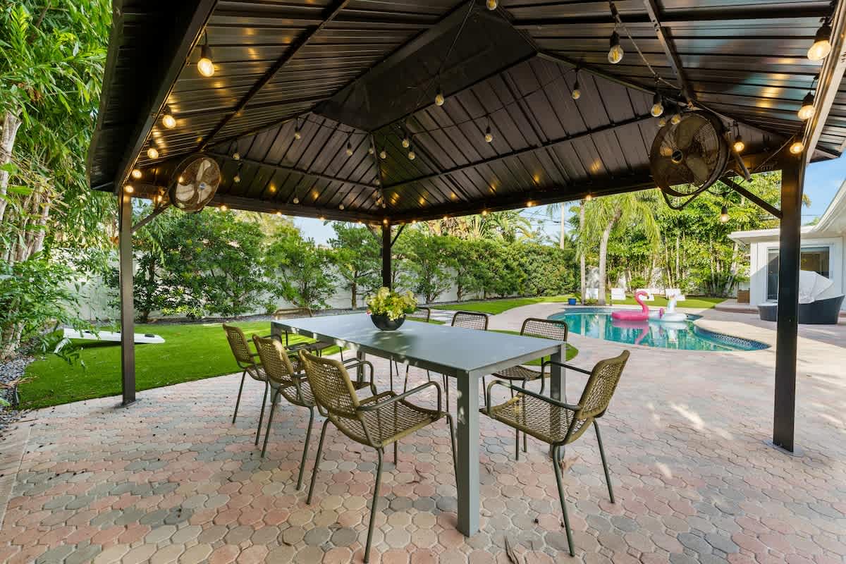 Step outside to your private heated pool oasis, unwind by the fire pit, float in the pool with the iconic pink flamingo, or enjoy outdoor dining under a string-lighted gazebo with a BBQ grill, ideal for day-to-night gatherings. Designed for comfort and style, this coastal home offers a peaceful getaway while being close to beaches, restaurants, and local attractions. Whether you’re planning a family vacation, friends’ getaway, or extended stay, this Lighthouse Point home delivers the perfect blend of luxury, location, and relaxation.