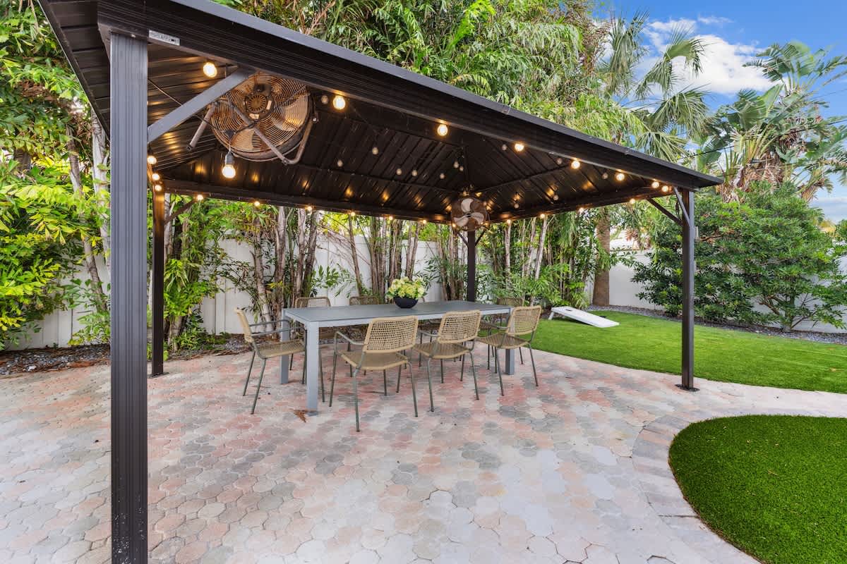 Your private backyard oasis is perfect for Florida living, rain or shine. Unwind under the covered gazebo, enjoy a family BBQ, or soak in the private pool surrounded by multiple seating areas. In the evening, gather around the cozy fire pit for a relaxing night under the stars.