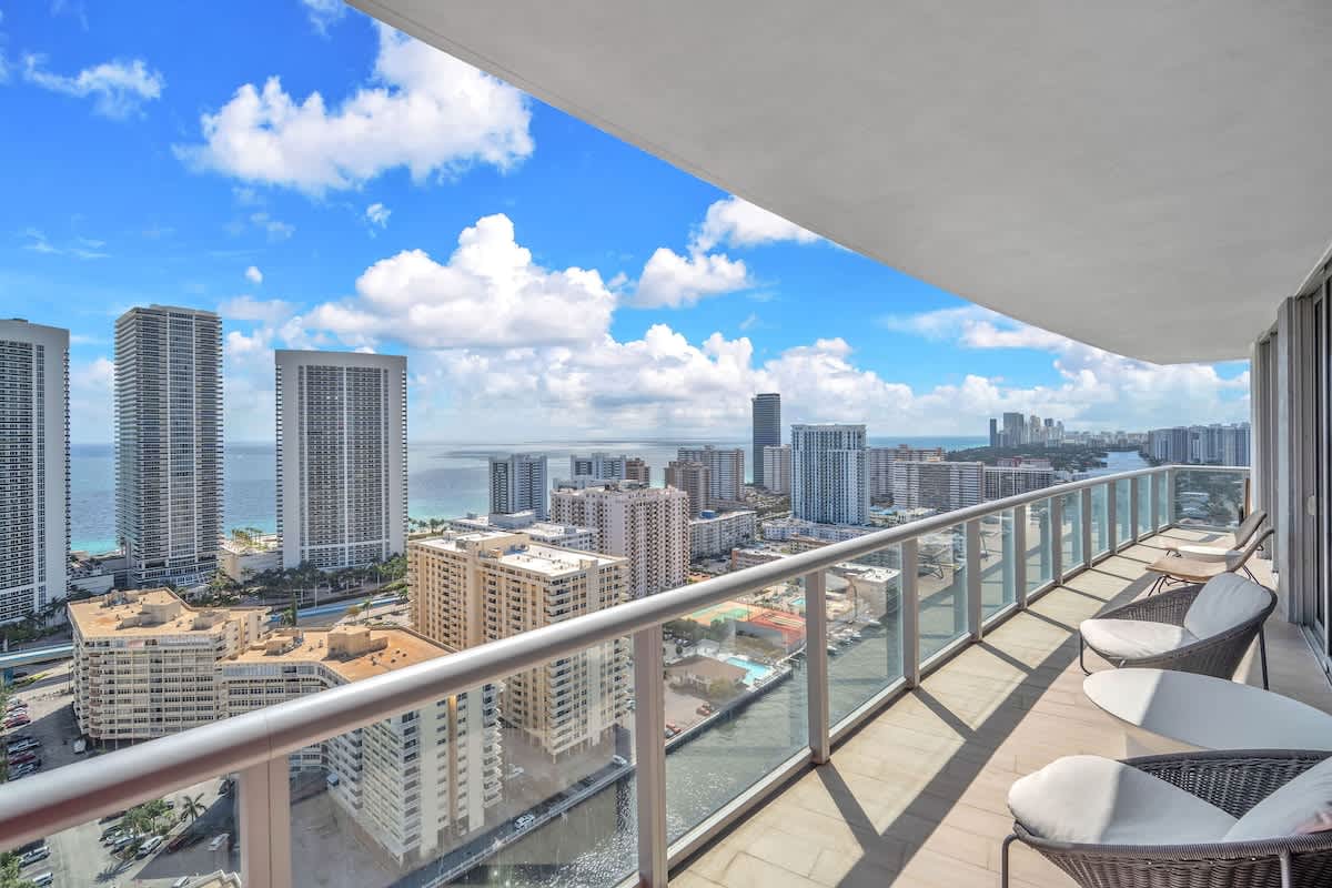 • Private wrap around balcony with panoramic ocean, intracoastal and skyline views