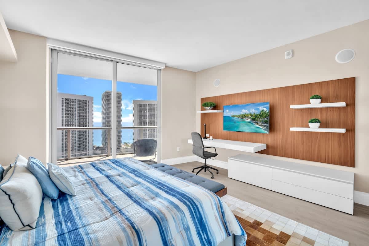 Skyline Penthouse is a stunning high-floor 3BR/3BA at Beachwalk Resort with panoramic ocean, intracoastal, and skyline views. Enjoy floor-to-ceiling windows, two private balconies, a modern kitchen, and spacious living areas. Arrive in style with your own private elevator entrance. Guests have access to premium resort amenities including a heated pool, fitness center, and beach club with shuttle service. Perfect for families, groups, or extended stays seeking comfort, style, and unbeatable views