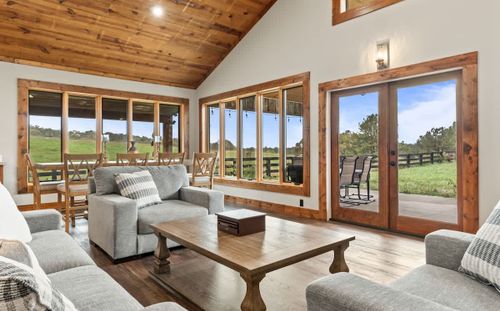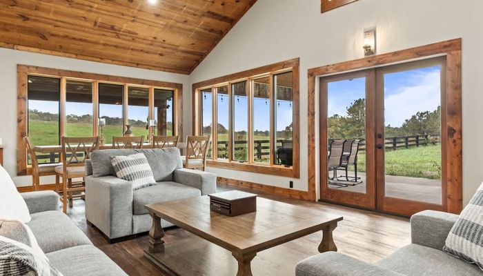 Guests have full access to the entire home, including the open-concept living areas, modern kitchen, dining room, entertainment loft, and all outdoor spaces. Enjoy the hillside jacuzzi, spacious porches, and peaceful areas around the farm where you can relax and take in the scenery.The large stable and riding arena are also open for guests to walk through and explore, offering an authentic look at farm life.