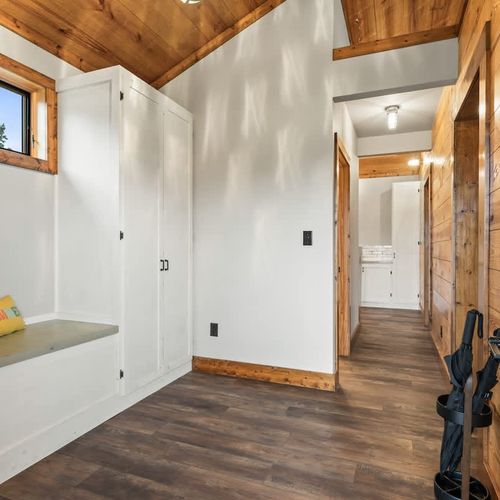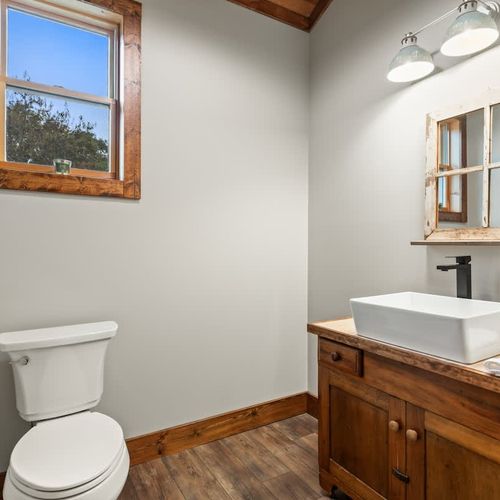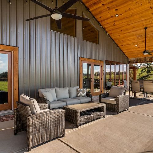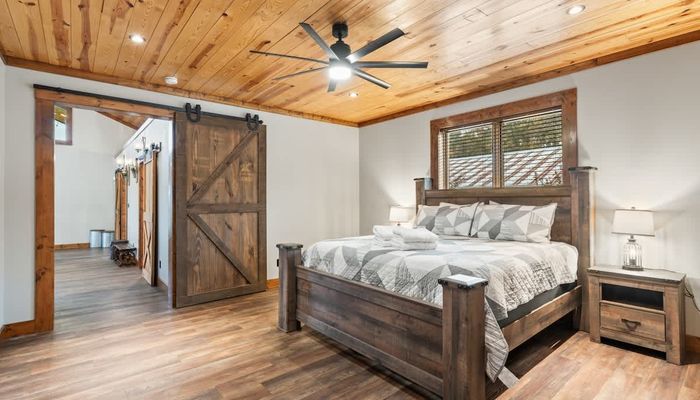 Rustic farm-style sliding doors add warmth and character throughout the home, leading to cozy and thoughtfully designed spaces. Upstairs, an inviting entertainment room creates the perfect setting for movie nights, games, or unwinding after a day on the farm.
